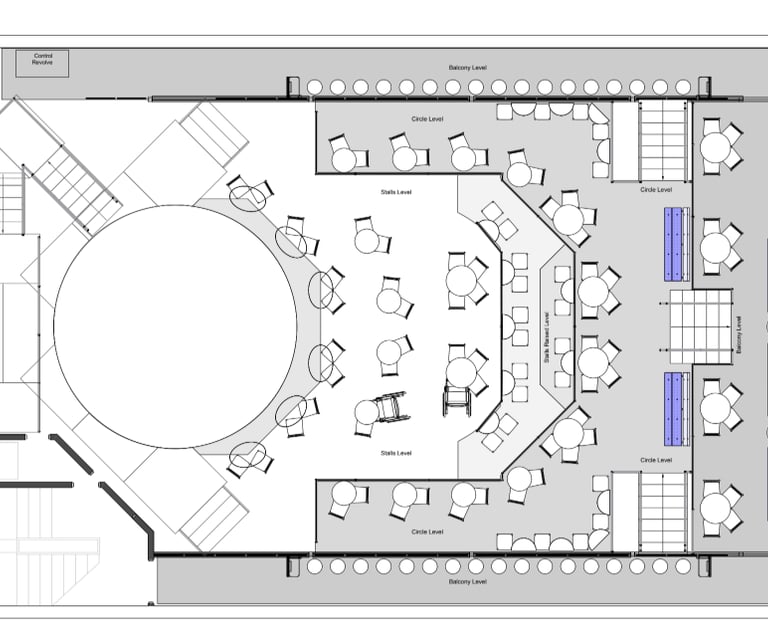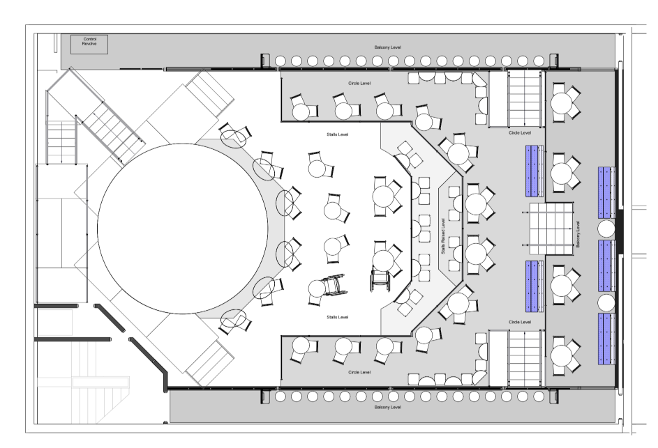 Seating plan: Stage with nice tables in audience